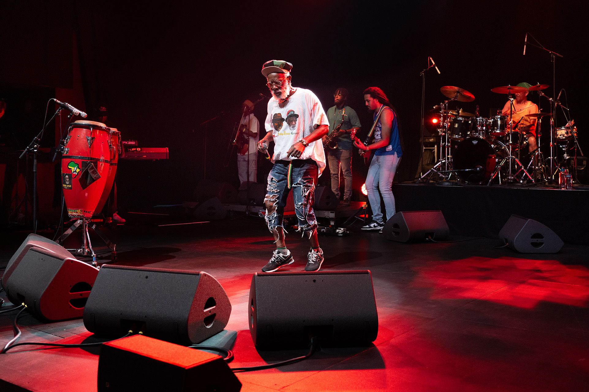 Since then, this concert hall has become one of the centers of reggae and hip-hop subcultures in Switzerland. For the Burning Spear (1) concert in January 1981, which tour bus seemed as big as the hall, we - about a hundred spectators, myself included - queued for an hour in the cold to eventually get inside the hall. Rumors say that the band has not only been paid in cash but also in Swiss made weed. There was no stage light, which, to my shame, led me to take flash pictures.